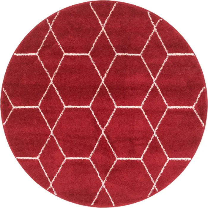 Unique Loom Geometric Trellis Frieze Rug in Red Round 3146667