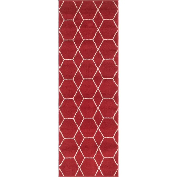 Unique Loom Geometric Trellis Frieze Rug in Red Runner 3146670