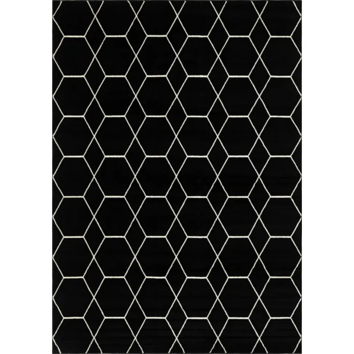Unique Loom Geometric Trellis Frieze Rug in Black Rectangular 3146671