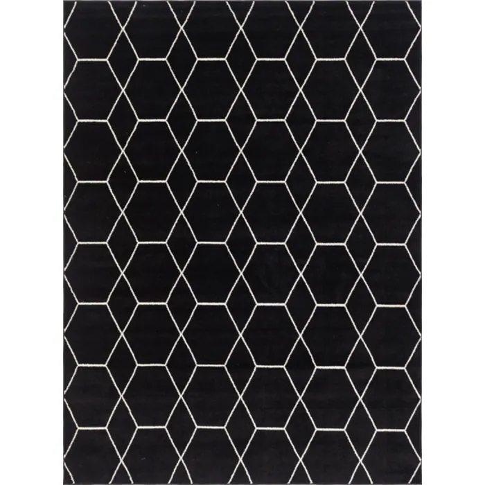 Unique Loom Geometric Trellis Frieze Rug in Black Rectangular 3146672