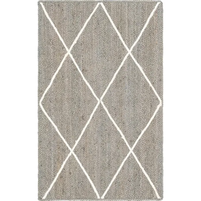 Unique Loom Trellis Braided Jute Rug in Gray/Ivory Rectangular 3146859
