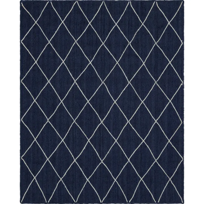 Unique Loom Trellis Braided Jute Rug in Navy Blue/Ivory Rectangular 3146865
