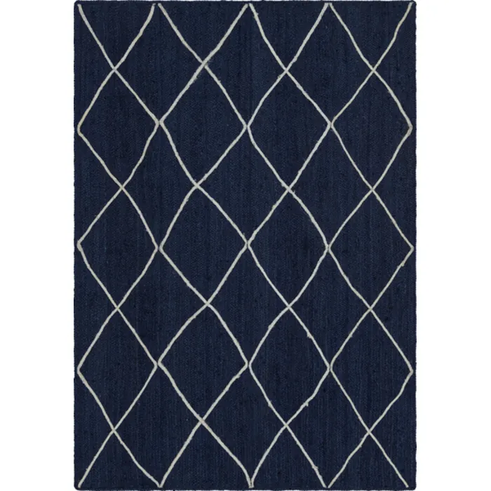 Unique Loom Trellis Braided Jute Rug in Navy Blue/Ivory Rectangular 3146866
