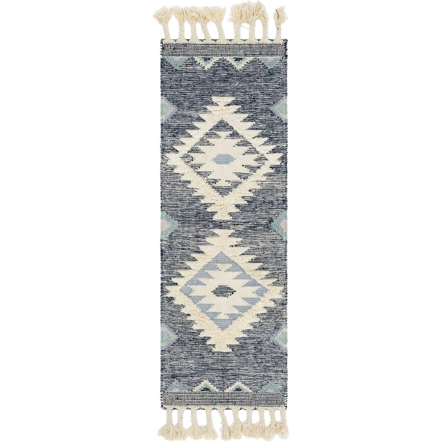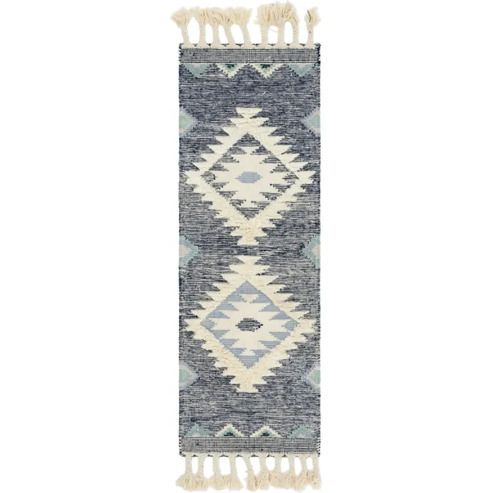 The geometric tribal pattern of the Mesa Collection brings an exciting southwestern flair to any room. The woven construction contrasts with raised areas and fringe for even more visual interest. The subdued color palettes and transitional design keep it from becoming too overbearing whether in a modern or traditional style room.