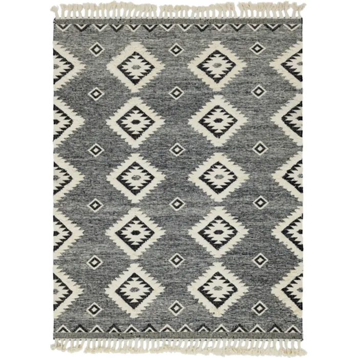 The geometric tribal pattern of the Mesa Collection brings an exciting southwestern flair to any room. The woven construction contrasts with raised areas and fringe for even more visual interest. The subdued color palettes and transitional design keep it from becoming too overbearing whether in a modern or traditional style room.