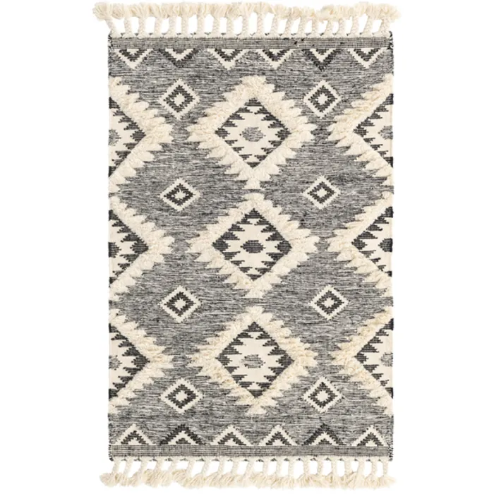 The geometric tribal pattern of the Mesa Collection brings an exciting southwestern flair to any room. The woven construction contrasts with raised areas and fringe for even more visual interest. The subdued color palettes and transitional design keep it from becoming too overbearing whether in a modern or traditional style room.