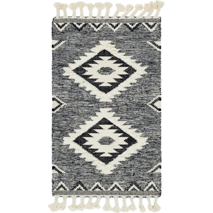 The geometric tribal pattern of the Mesa Collection brings an exciting southwestern flair to any room. The woven construction contrasts with raised areas and fringe for even more visual interest. The subdued color palettes and transitional design keep it from becoming too overbearing whether in a modern or traditional style room.