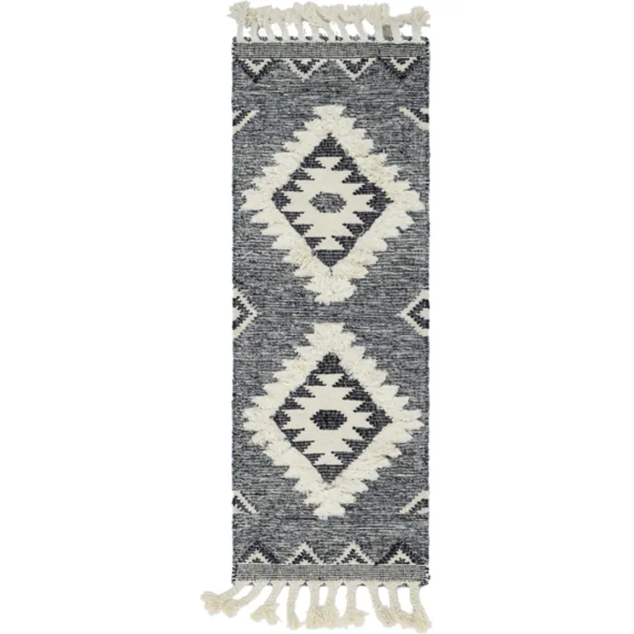 The geometric tribal pattern of the Mesa Collection brings an exciting southwestern flair to any room. The woven construction contrasts with raised areas and fringe for even more visual interest. The subdued color palettes and transitional design keep it from becoming too overbearing whether in a modern or traditional style room.