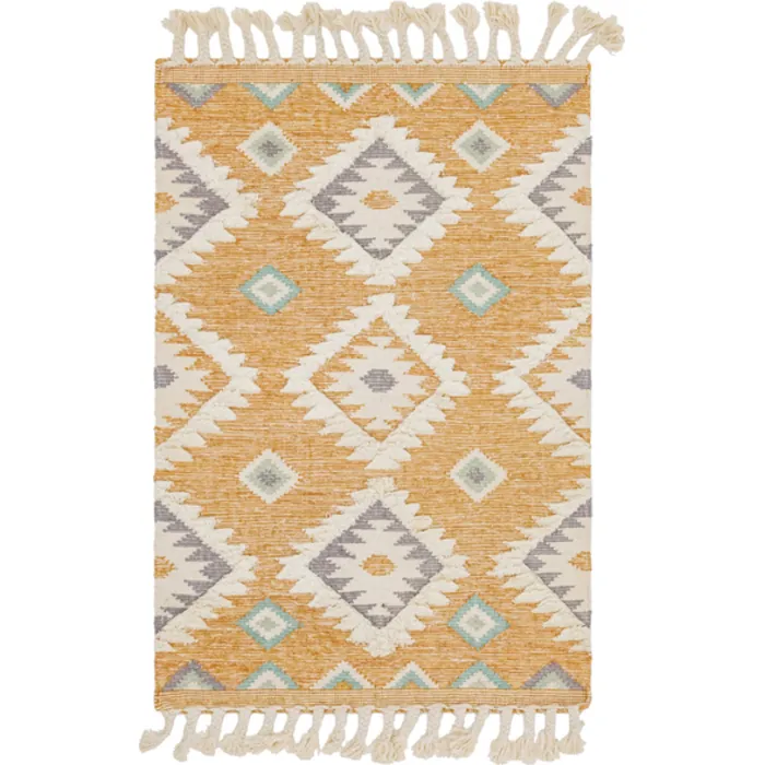 The geometric tribal pattern of the Mesa Collection brings an exciting southwestern flair to any room. The woven construction contrasts with raised areas and fringe for even more visual interest. The subdued color palettes and transitional design keep it from becoming too overbearing whether in a modern or traditional style room.