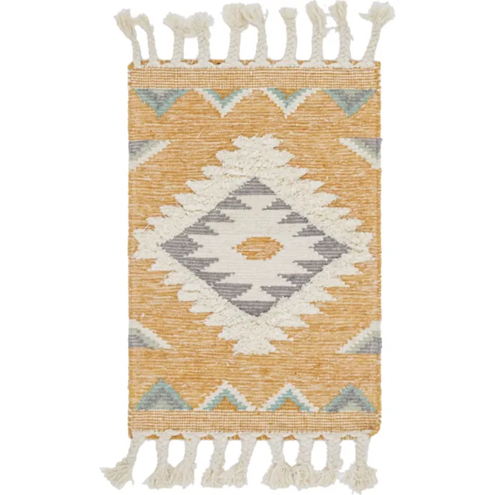 The geometric tribal pattern of the Mesa Collection brings an exciting southwestern flair to any room. The woven construction contrasts with raised areas and fringe for even more visual interest. The subdued color palettes and transitional design keep it from becoming too overbearing whether in a modern or traditional style room.