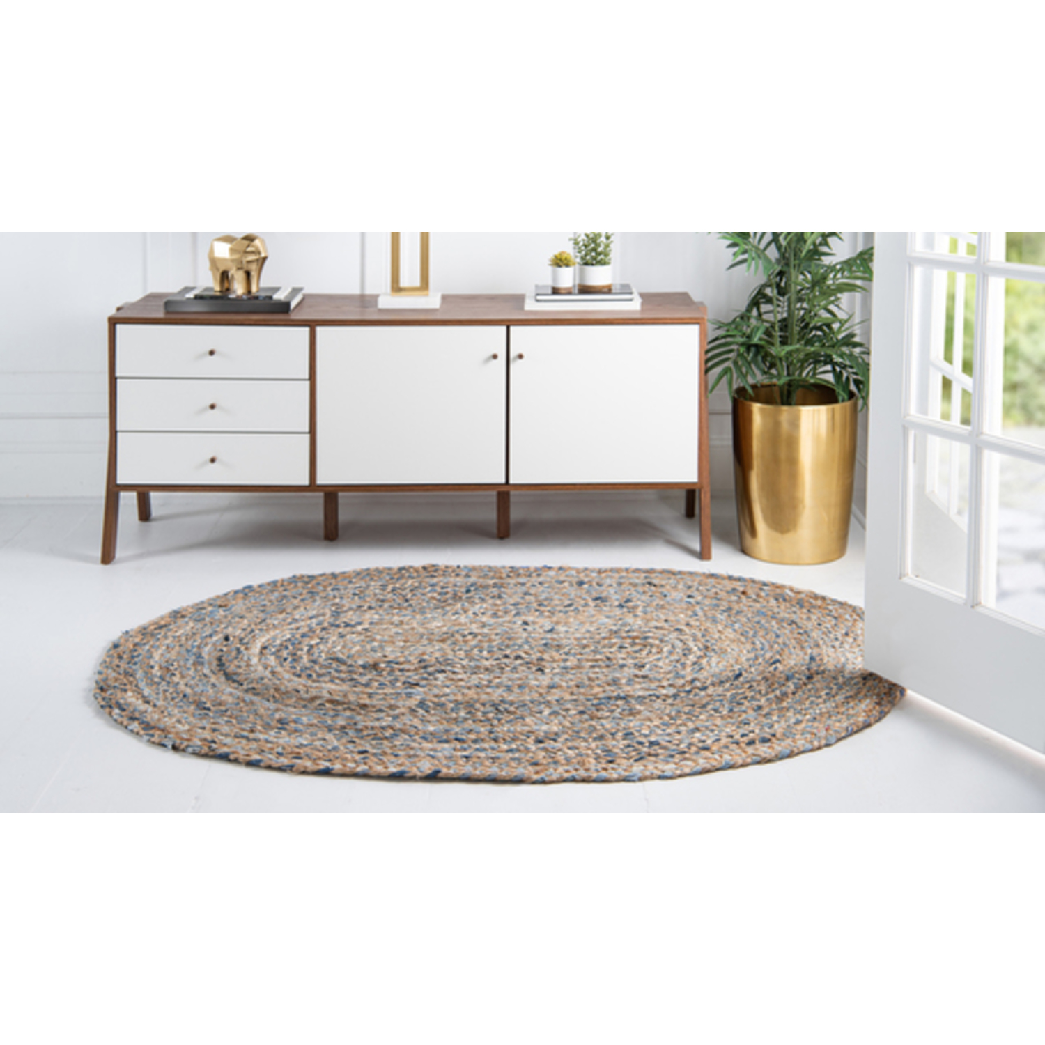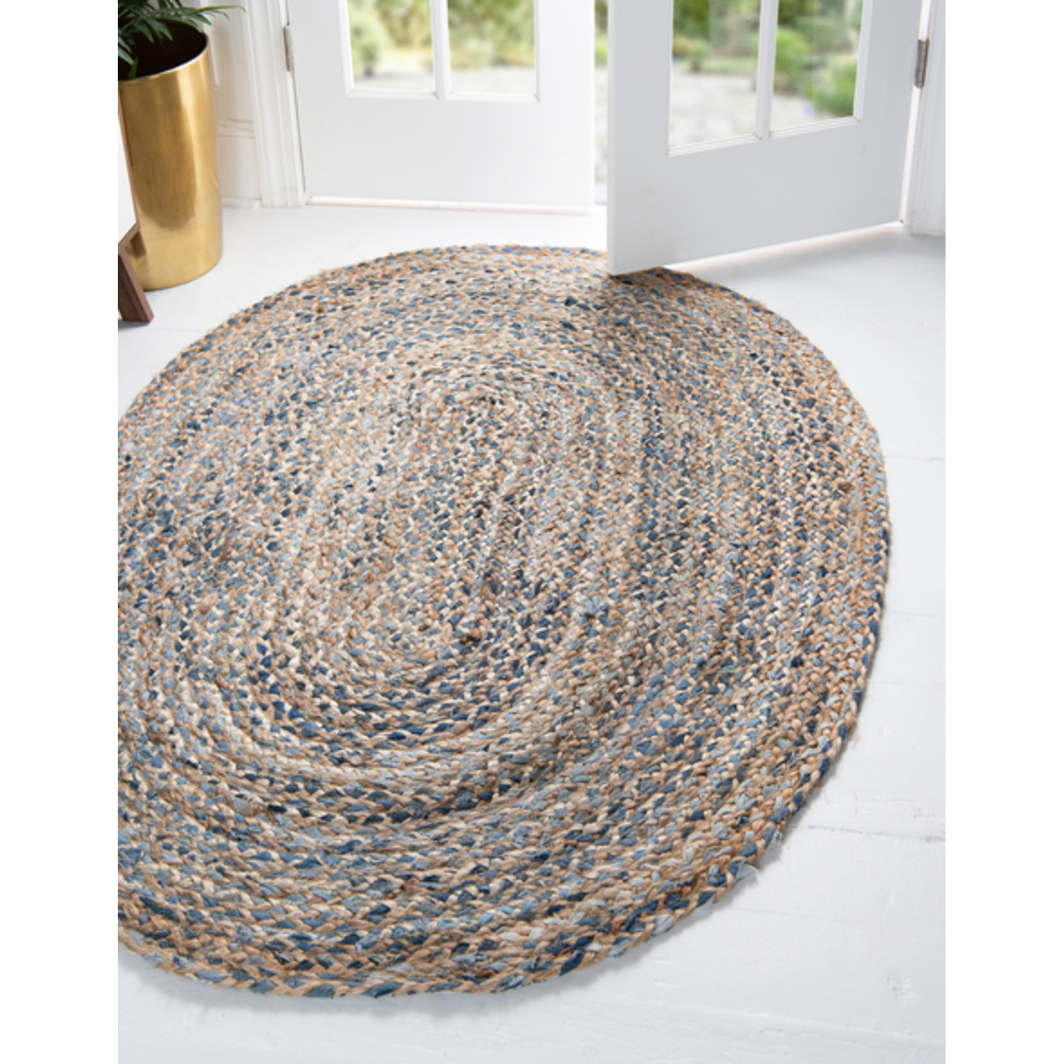 Unique Loom Crossed Braided Chindi Rug in Blue Oval 3146958