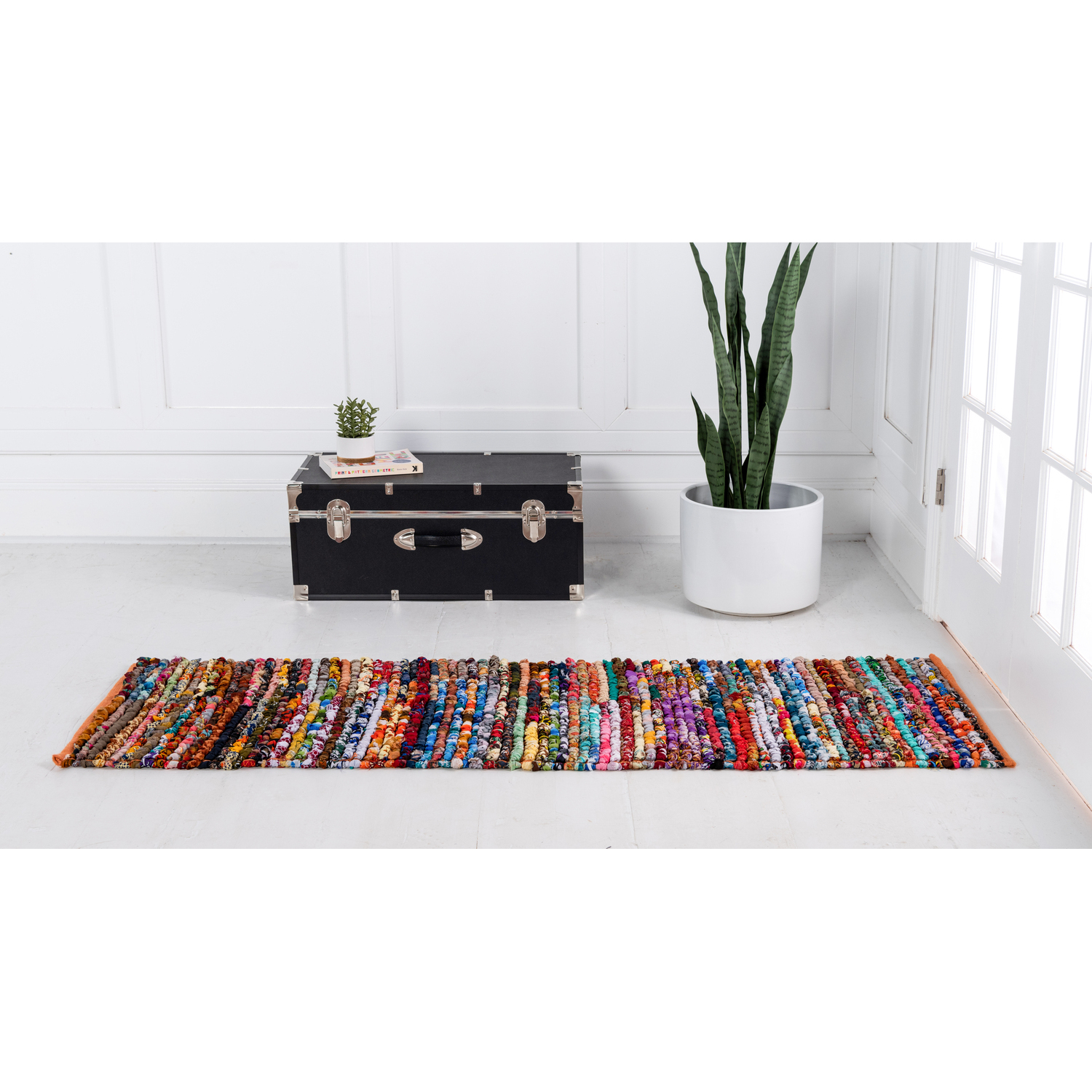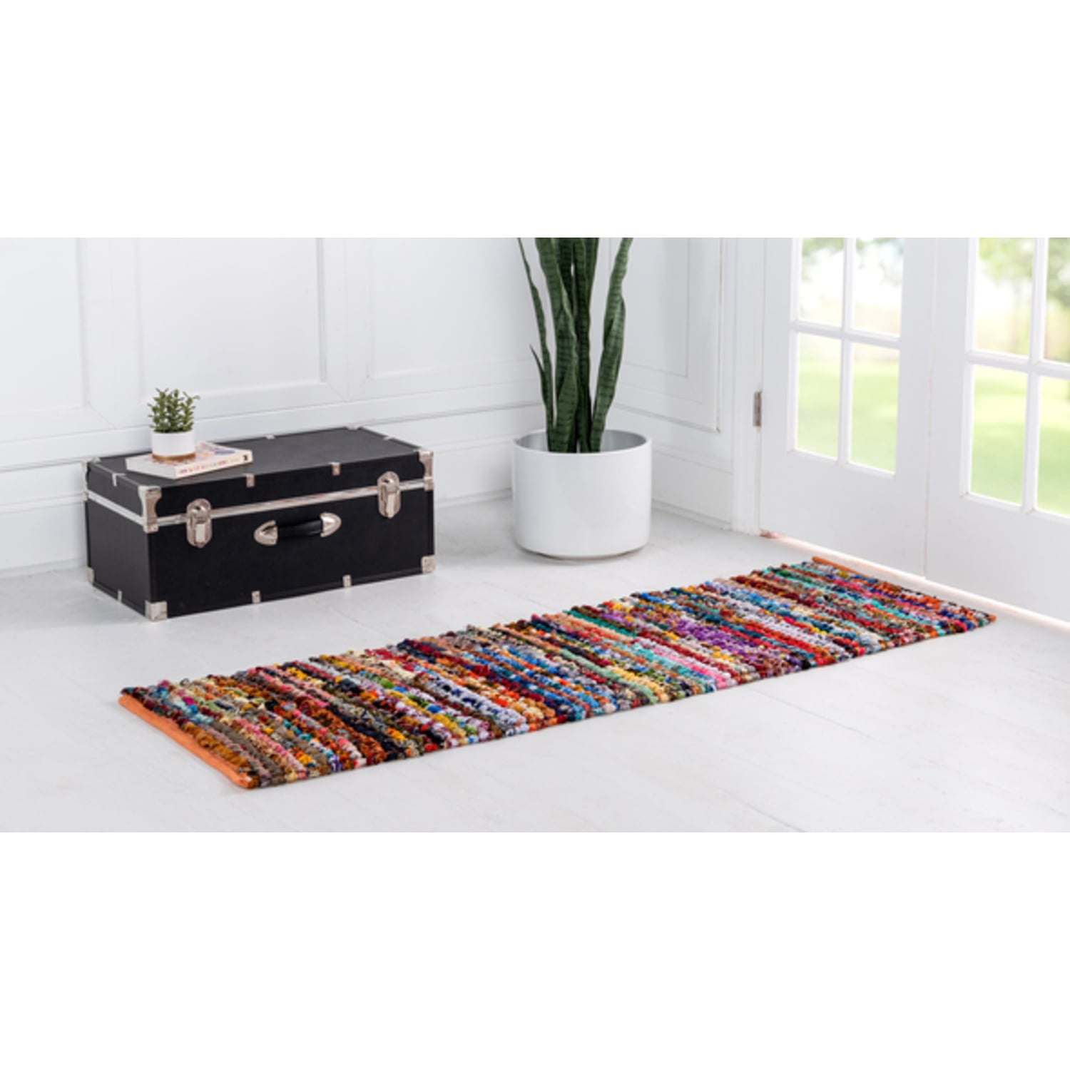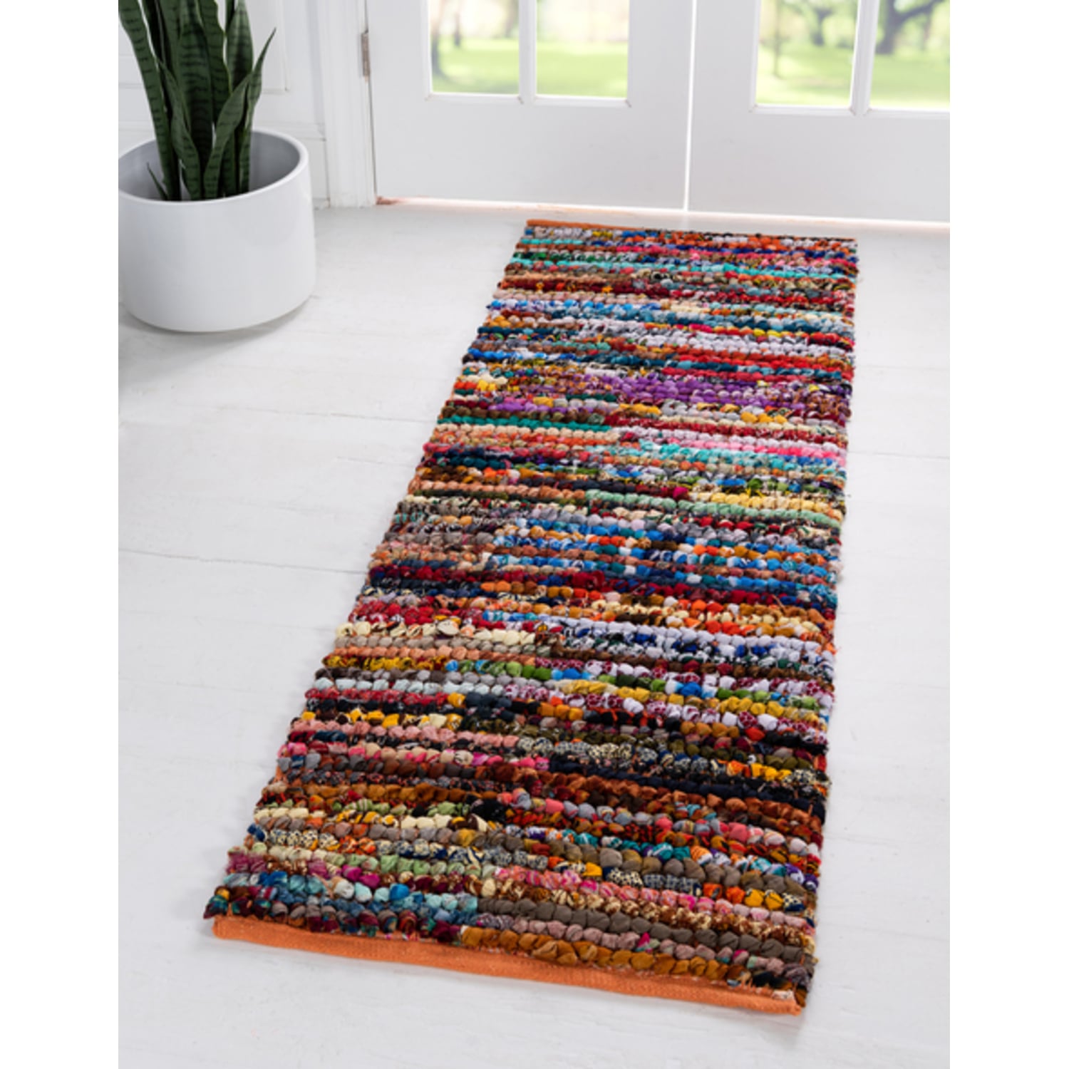 Unique Loom Multi-Striped Braided Chindi Rug in Multi Runner 3146971