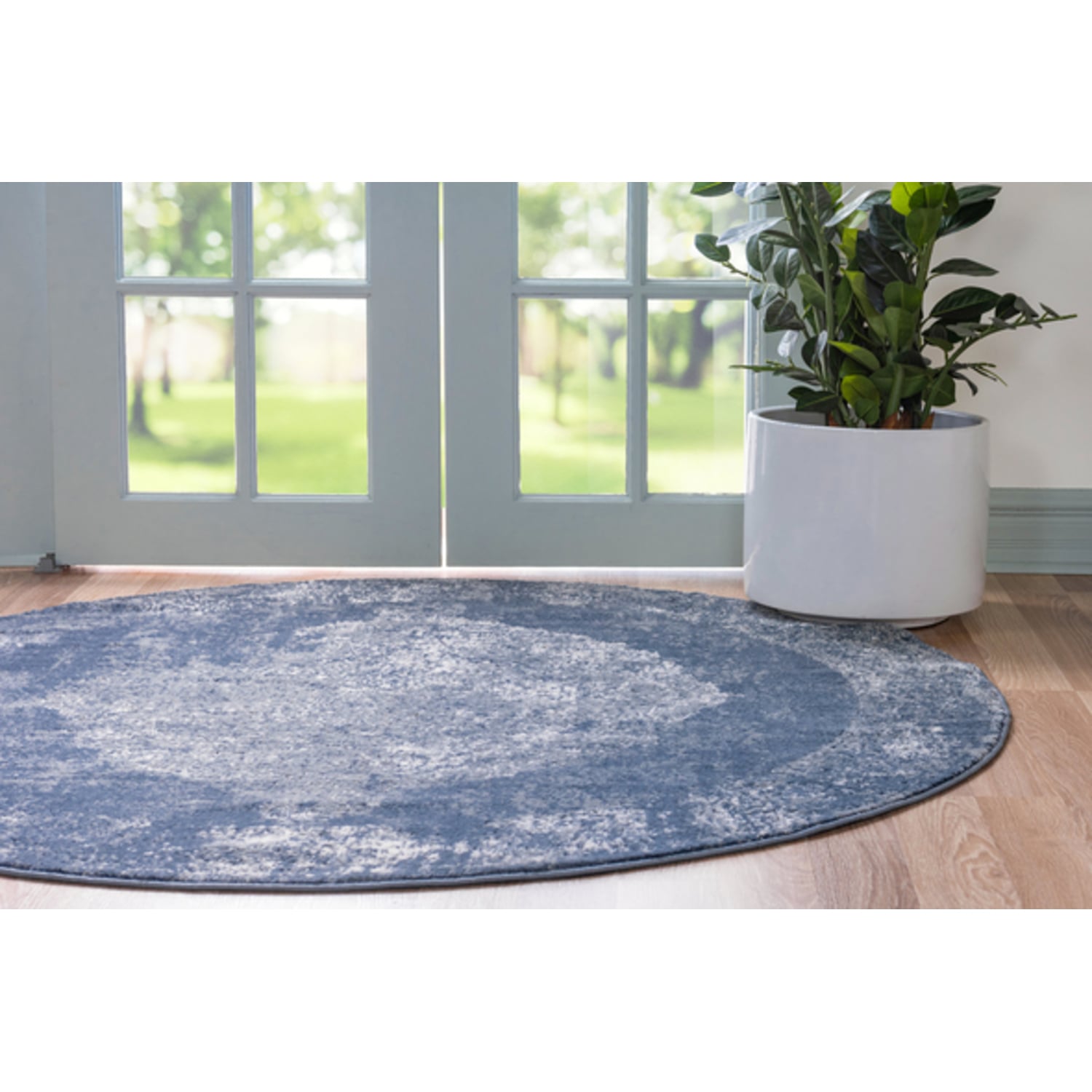 Unique Loom Woodburn Portland Rug in Blue Round 3147351