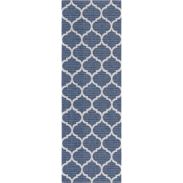 Unique Loom Trellis Decatur Rug in Navy Blue/Ivory Runner 3148018