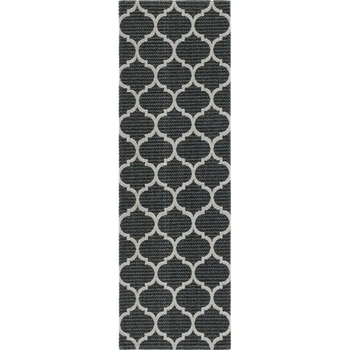 Unique Loom Trellis Decatur Rug in Black/Ivory Runner 3148050