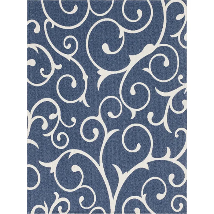 Unique Loom Scroll Decatur Rug in Navy Blue/Ivory Rectangular 3148092
