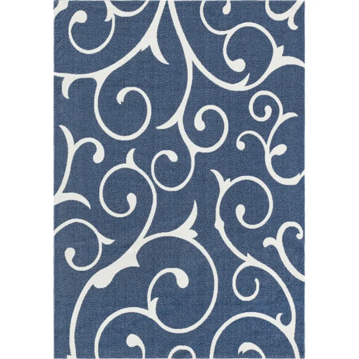 Unique Loom Scroll Decatur Rug in Navy Blue/Ivory Rectangular 3148093
