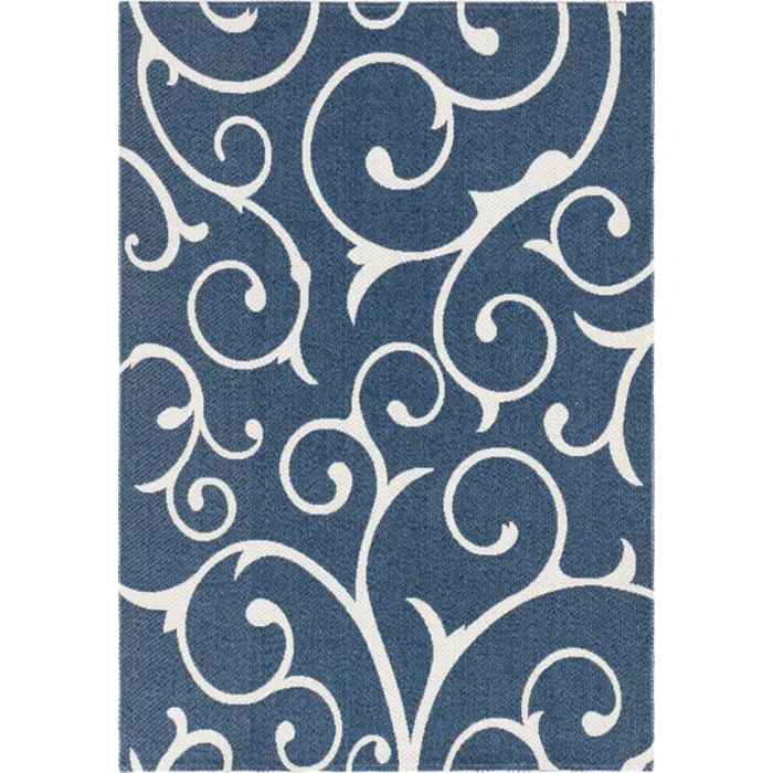 Unique Loom Scroll Decatur Rug in Navy Blue/Ivory Rectangular 3148094