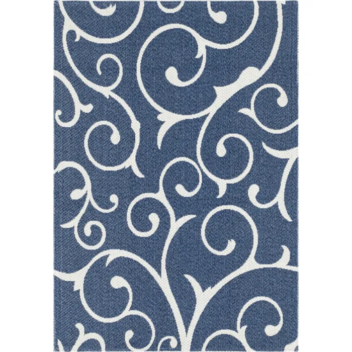 Unique Loom Scroll Decatur Rug in Navy Blue/Ivory Rectangular 3148095