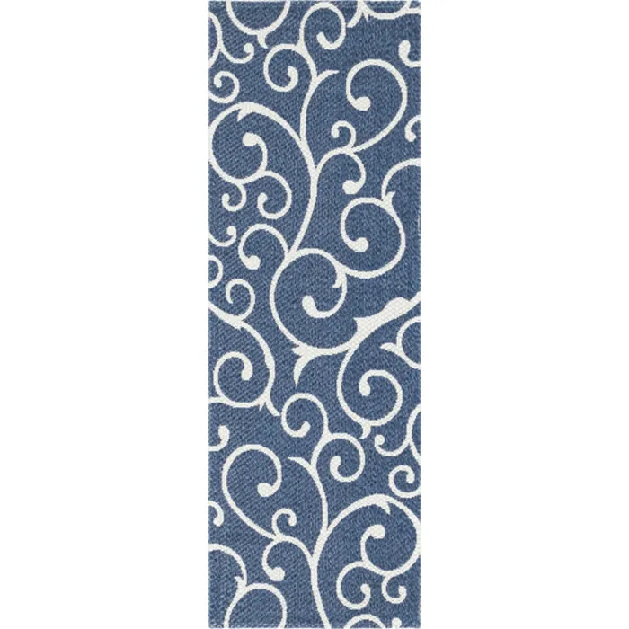 Unique Loom Scroll Decatur Rug in Navy Blue/Ivory Runner 3148098
