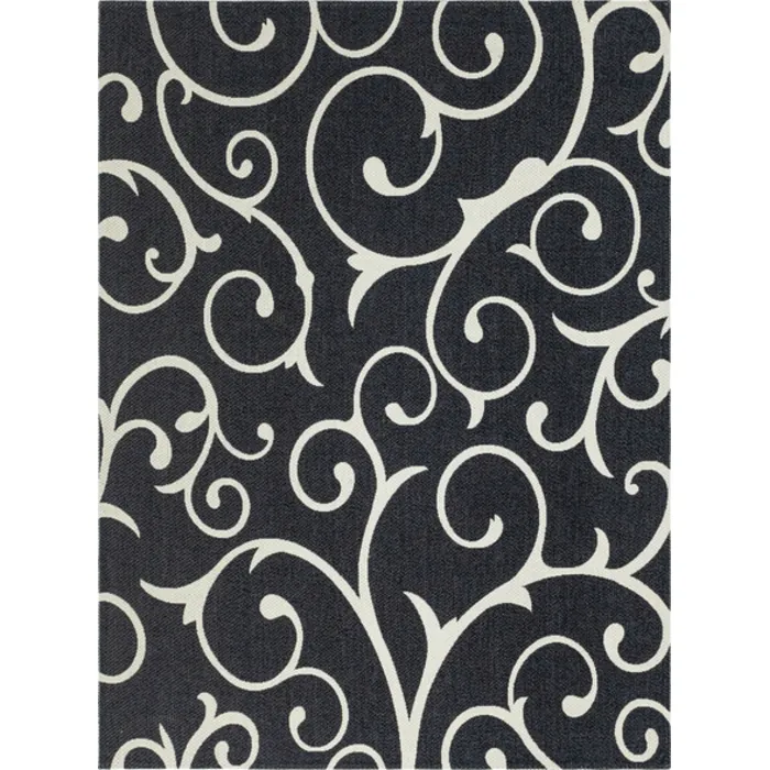 Unique Loom Scroll Decatur Rug in Black/Ivory Rectangular 3148116