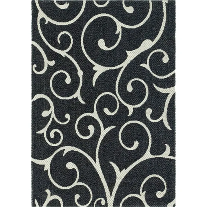 Unique Loom Scroll Decatur Rug in Black/Ivory Rectangular 3148119
