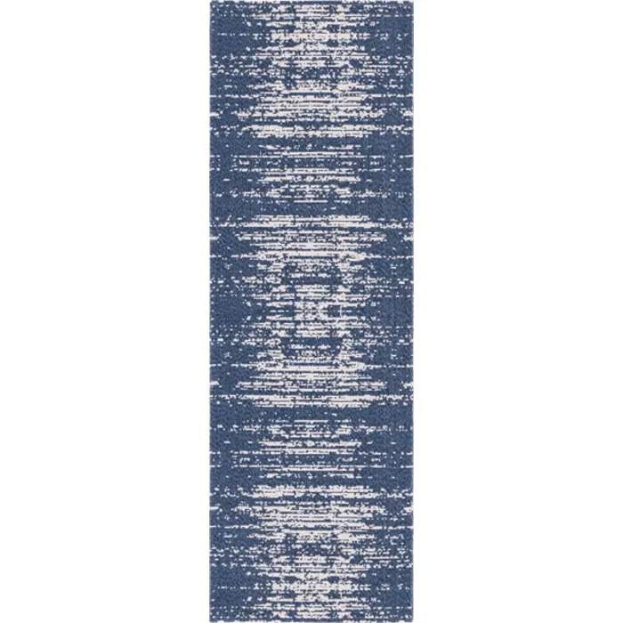 Unique Loom Static Decatur Rug in Navy Blue/Ivory Runner 3148130