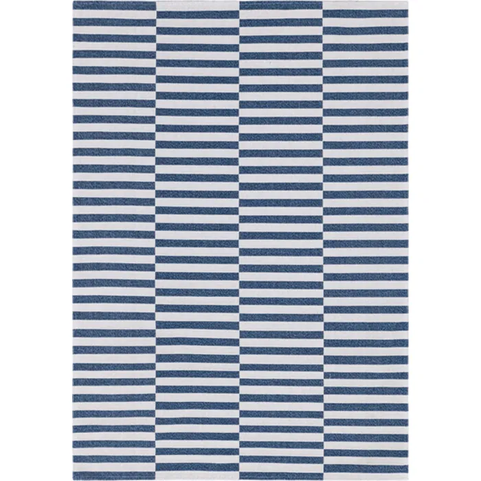 Unique Loom Striped Decatur Rug in Navy Blue/Ivory Rectangular 3148150