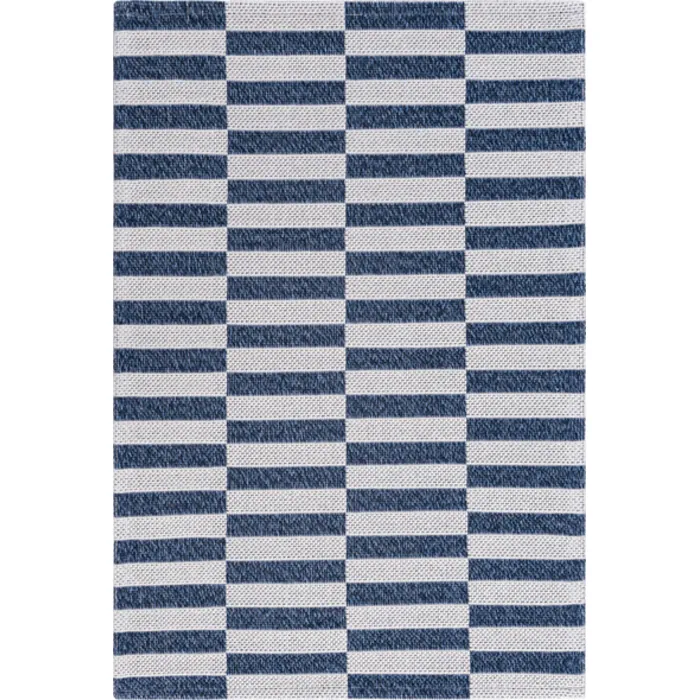 Unique Loom Striped Decatur Rug in Navy Blue/Ivory Rectangular 3148152