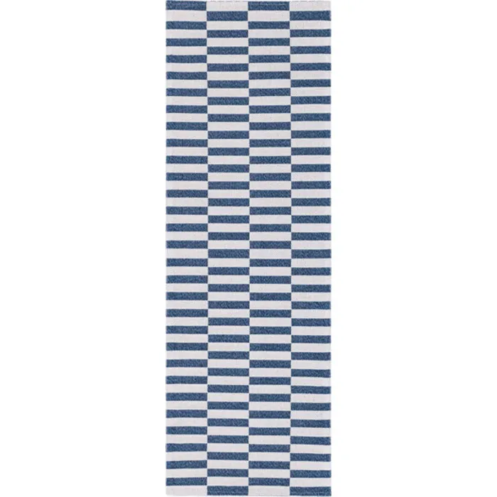 Unique Loom Striped Decatur Rug in Navy Blue/Ivory Runner 3148154