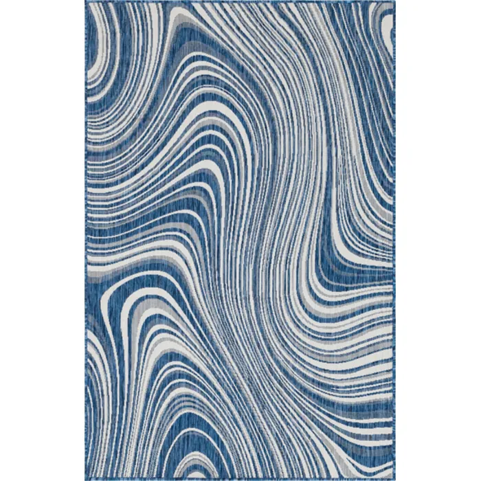 Unique Loom Outdoor Pool Rug in Navy Blue Rectangular 3148714