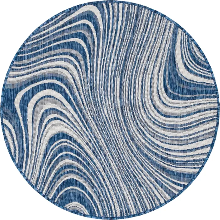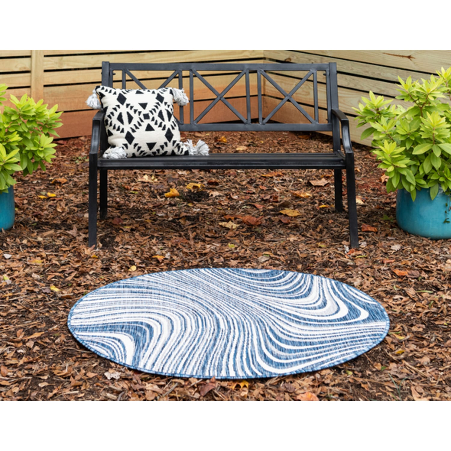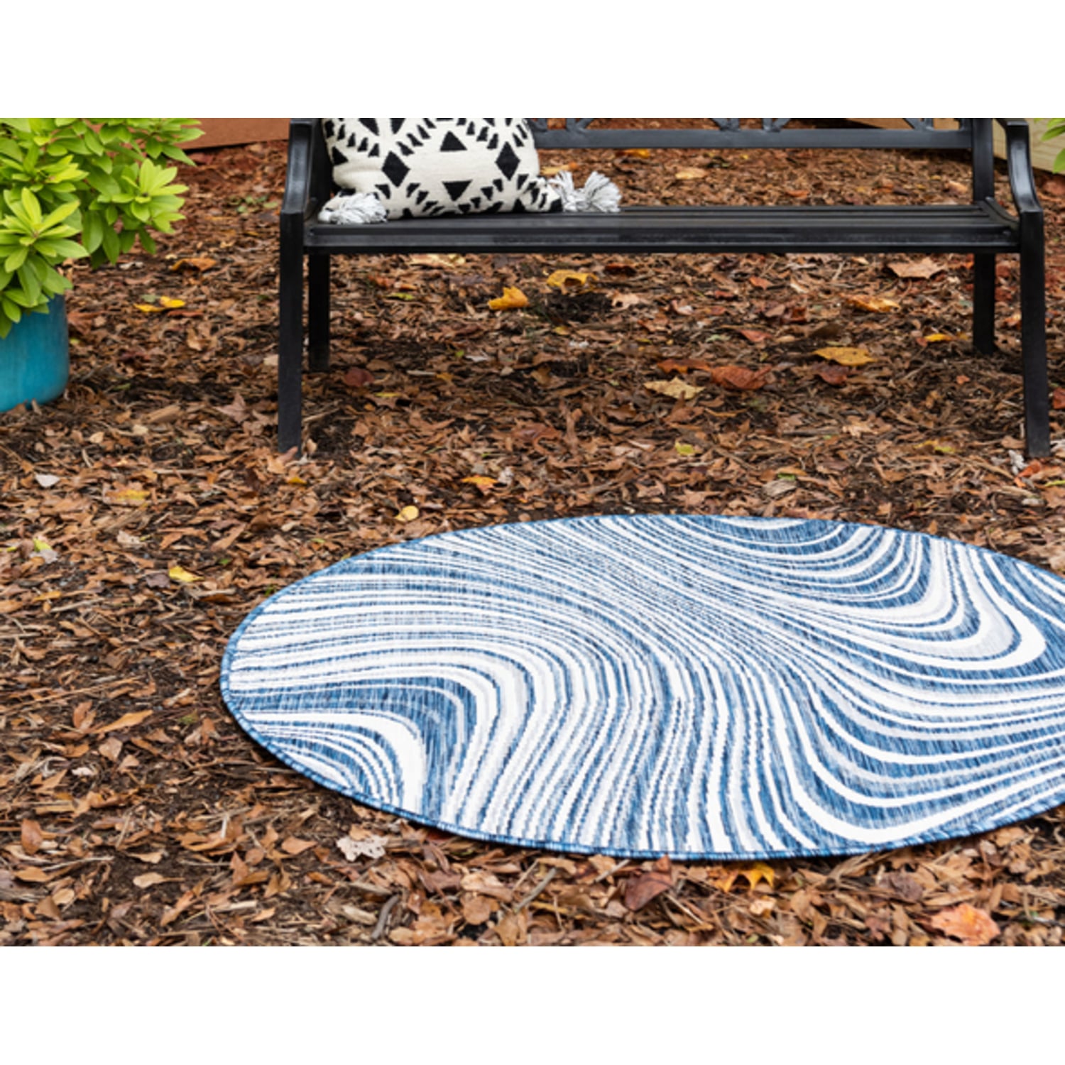 Unique Loom Outdoor Pool Rug in Navy Blue Round 3148716