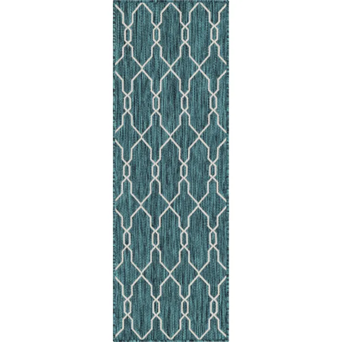 Unique Loom Outdoor Links Trellis Rug in Teal/Ivory Runner 3148805