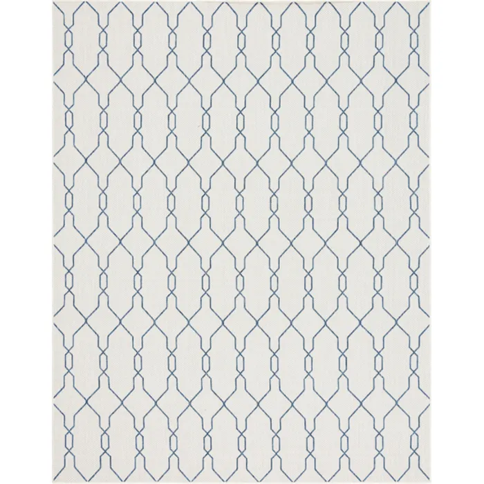 Unique Loom Outdoor Links Trellis Rug in Ivory/Navy Blue Rectangular 3148814