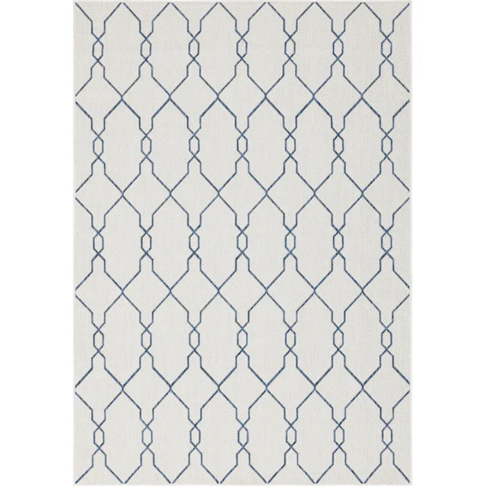 Unique Loom Outdoor Links Trellis Rug in Ivory/Navy Blue Rectangular 3148817