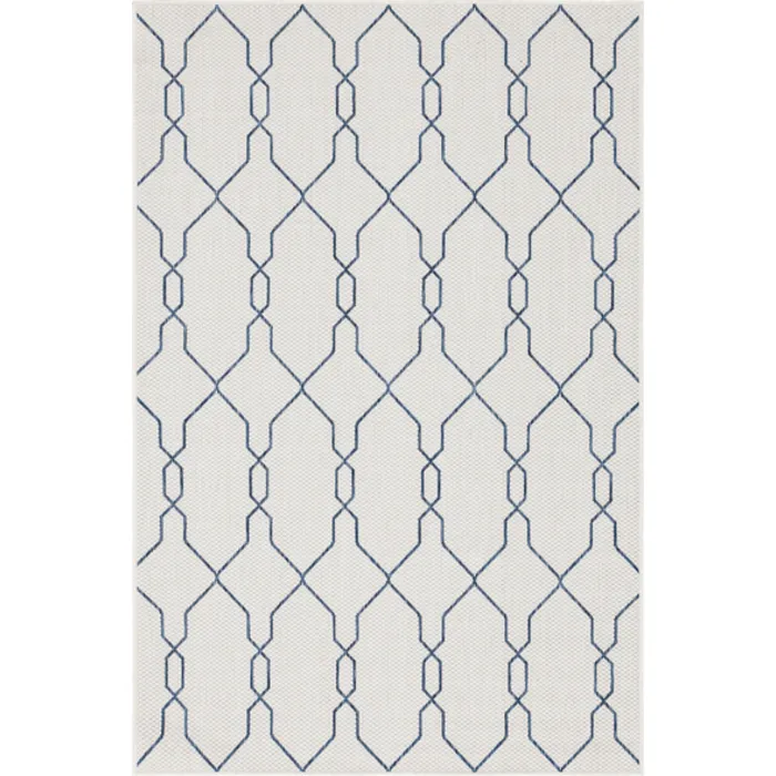 Unique Loom Outdoor Links Trellis Rug in Ivory/Navy Blue Rectangular 3148818
