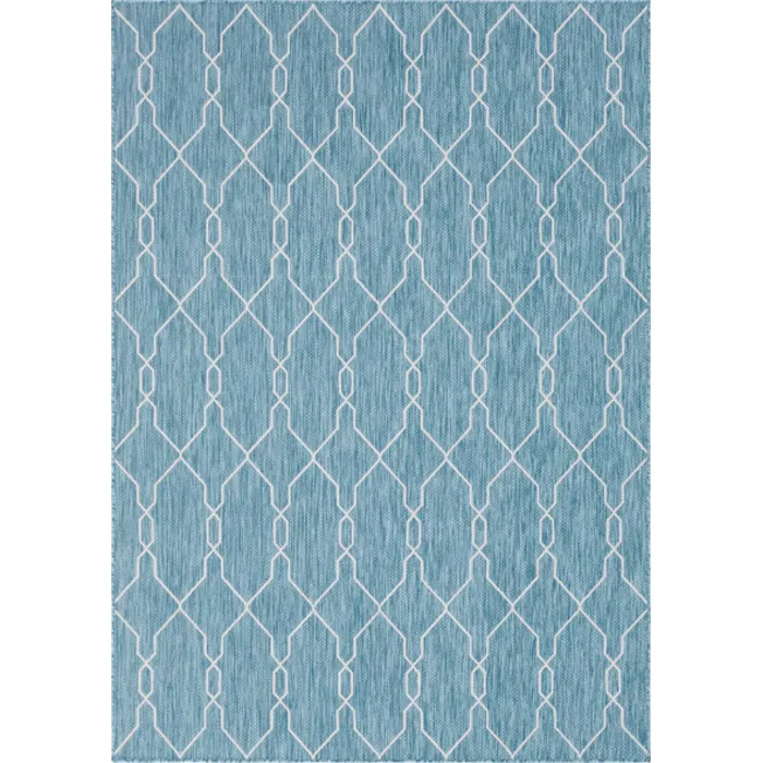 Unique Loom Outdoor Links Trellis Rug in Blue/Ivory Rectangular 3148824