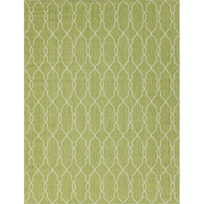 Unique Loom Outdoor Links Trellis Rug in Green/Ivory Rectangular 3148830