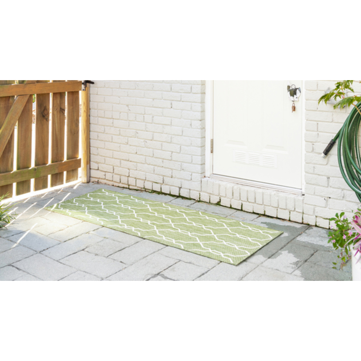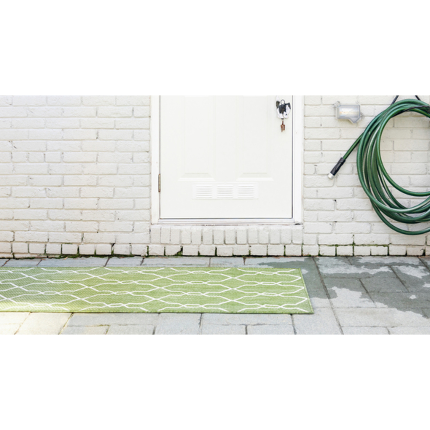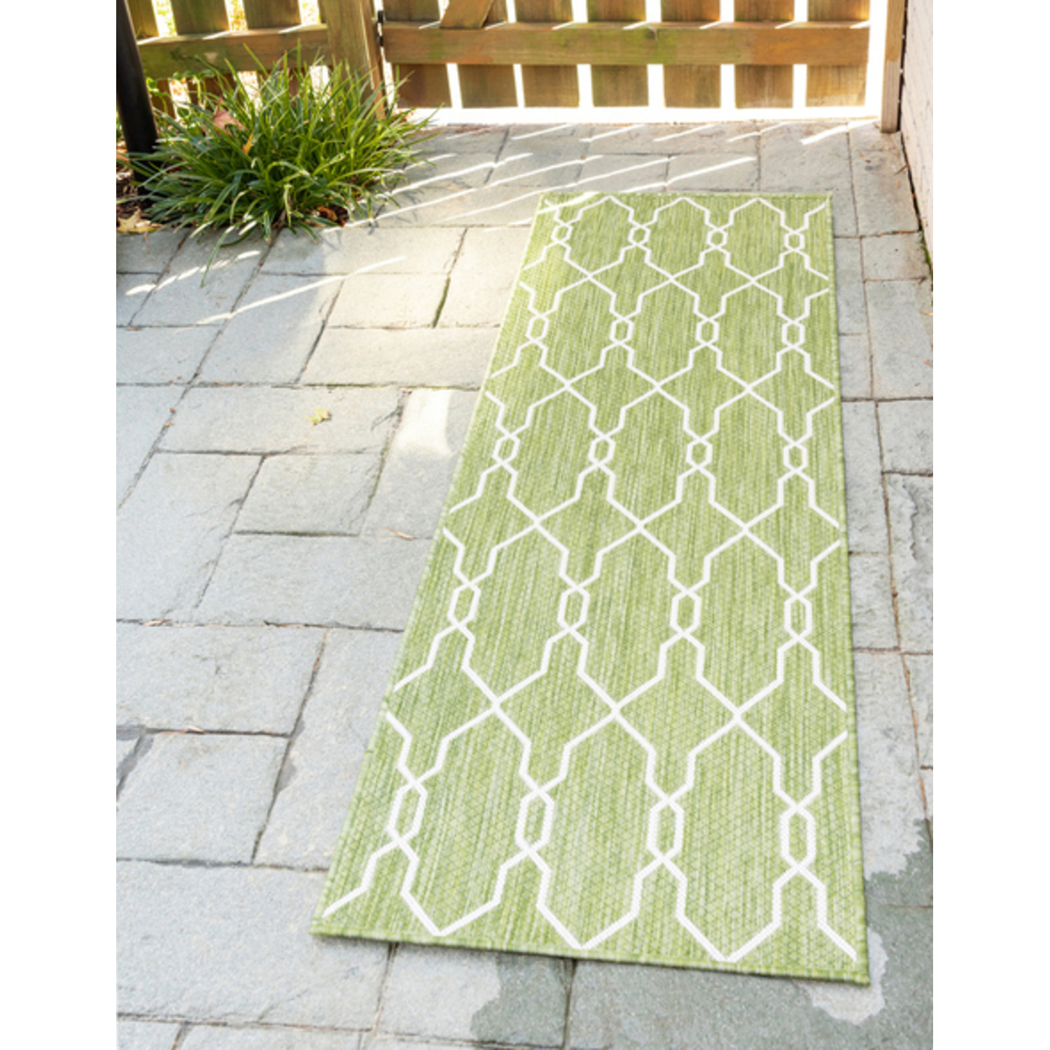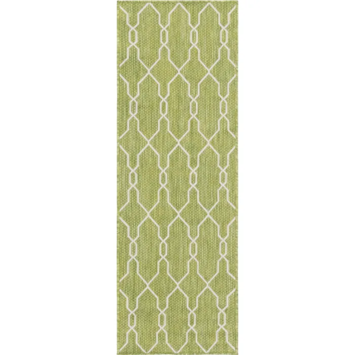 Unique Loom Outdoor Links Trellis Rug in Green/Ivory Runner 3148837