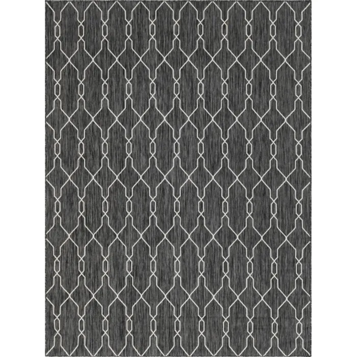 Unique Loom Outdoor Links Trellis Rug in Charcoal/Ivory Rectangular 3148838