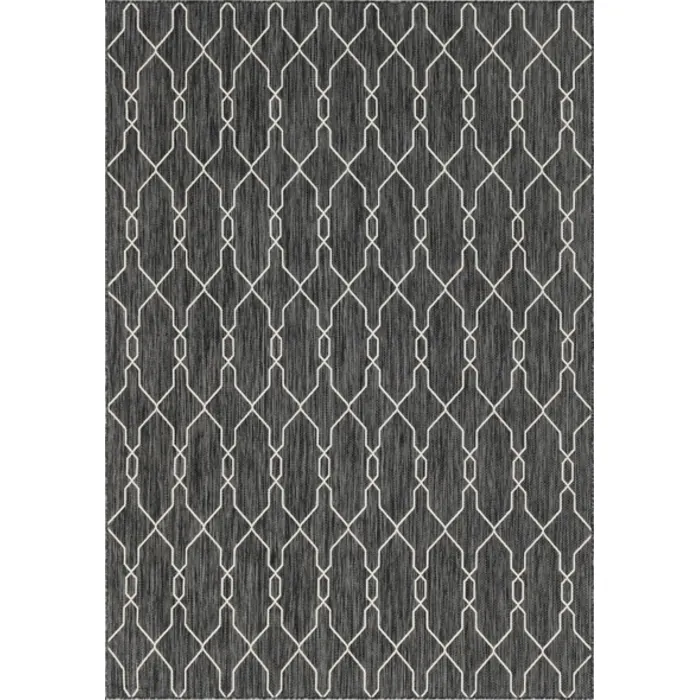 Unique Loom Outdoor Links Trellis Rug in Charcoal/Ivory Rectangular 3148839