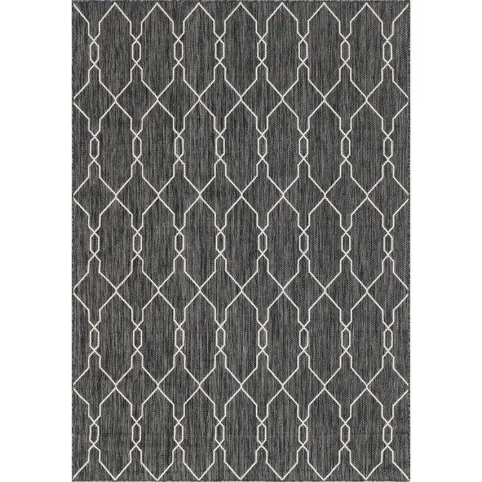 Unique Loom Outdoor Links Trellis Rug in Charcoal/Ivory Rectangular 3148840