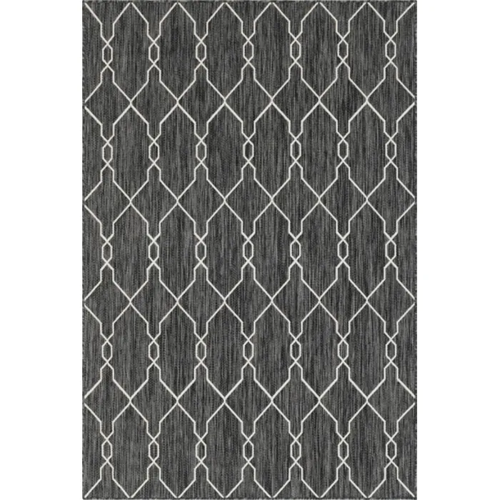 Unique Loom Outdoor Links Trellis Rug in Charcoal/Ivory Rectangular 3148841