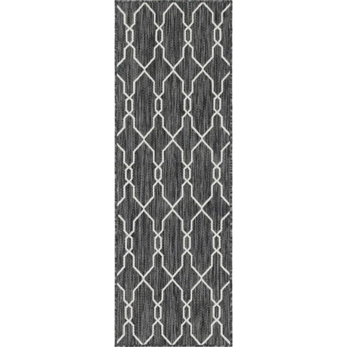Unique Loom Outdoor Links Trellis Rug in Charcoal/Ivory Runner 3148845