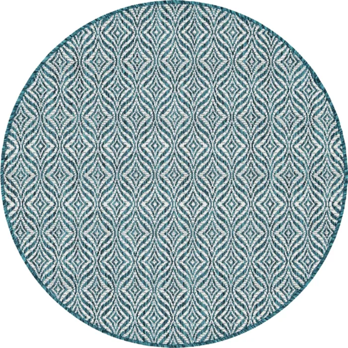 Unique Loom Outdoor Deco Trellis Rug in Teal/Ivory Round 3148868