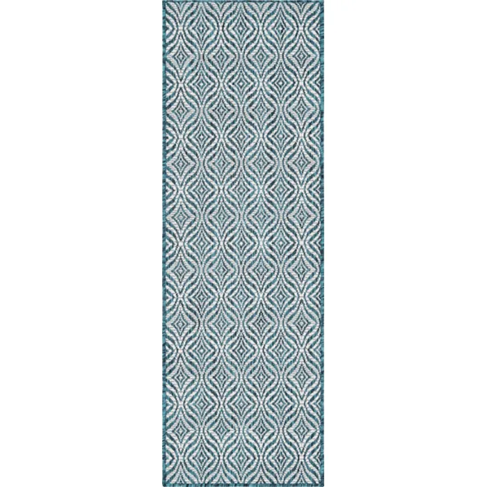 Unique Loom Outdoor Deco Trellis Rug in Teal/Ivory Runner 3148869