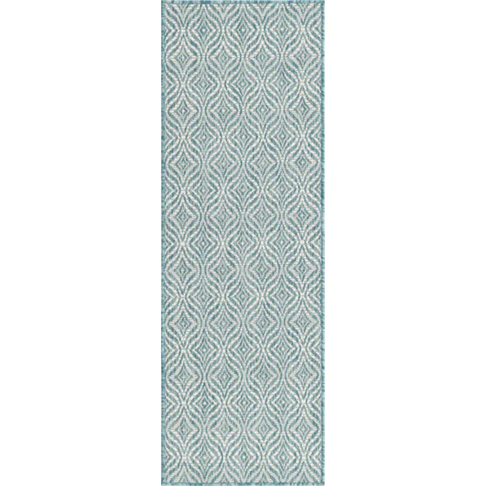 Unique Loom Outdoor Deco Trellis Rug in Blue/Ivory Runner 3148877