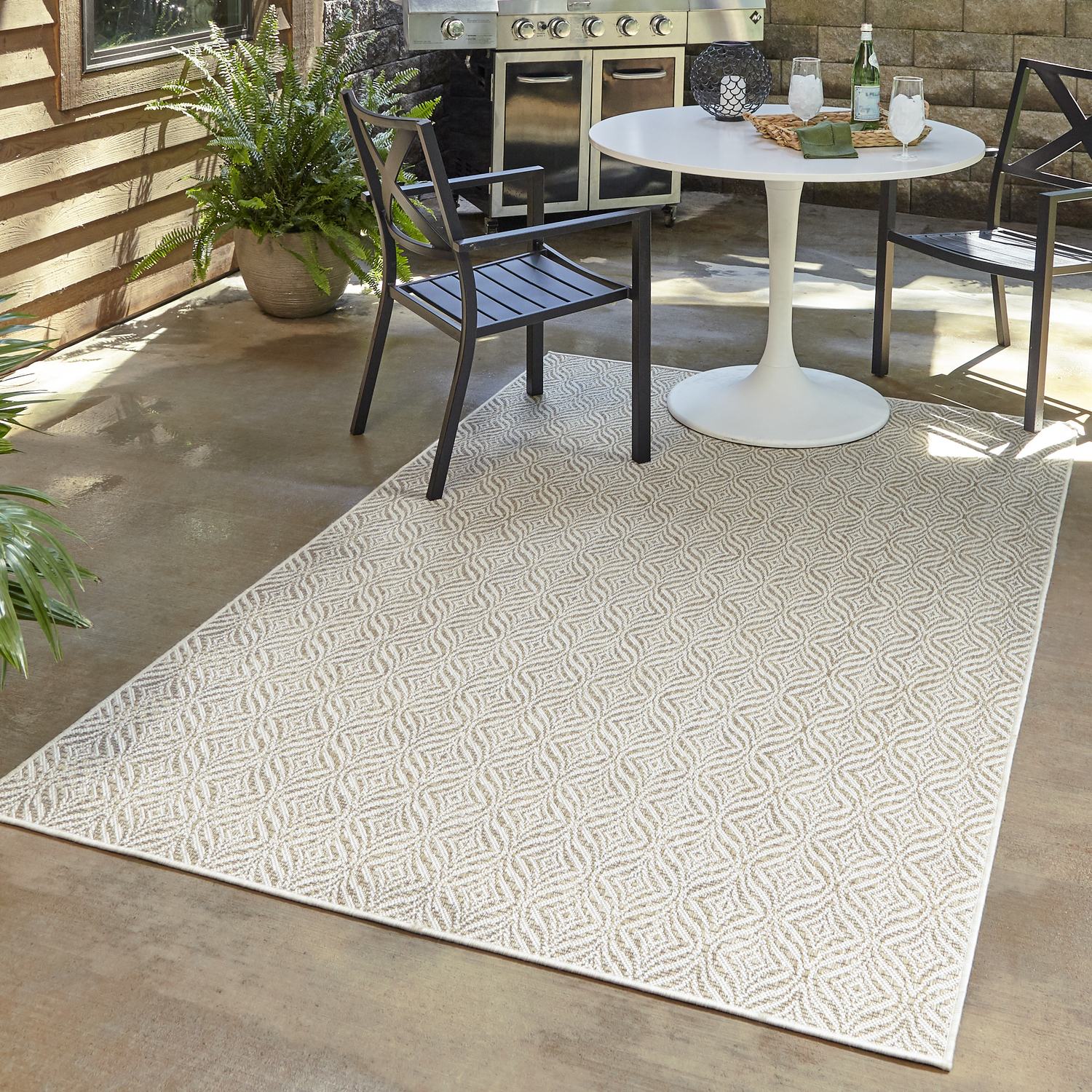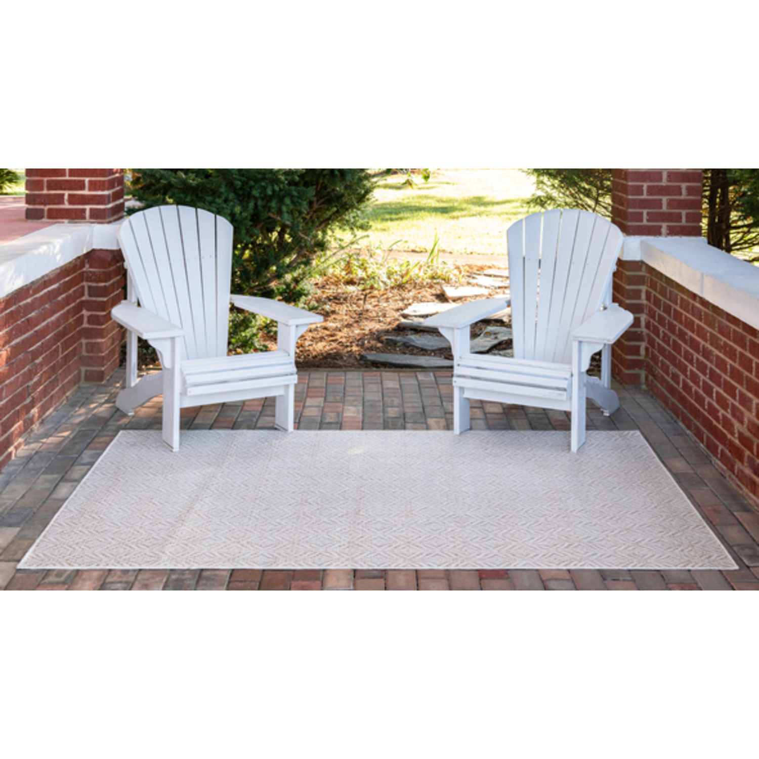 Unique Loom Outdoor Deco Trellis Rug in Tan/Ivory Rectangular 3148886