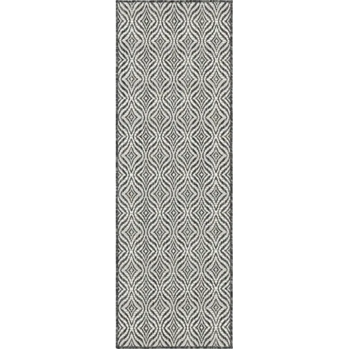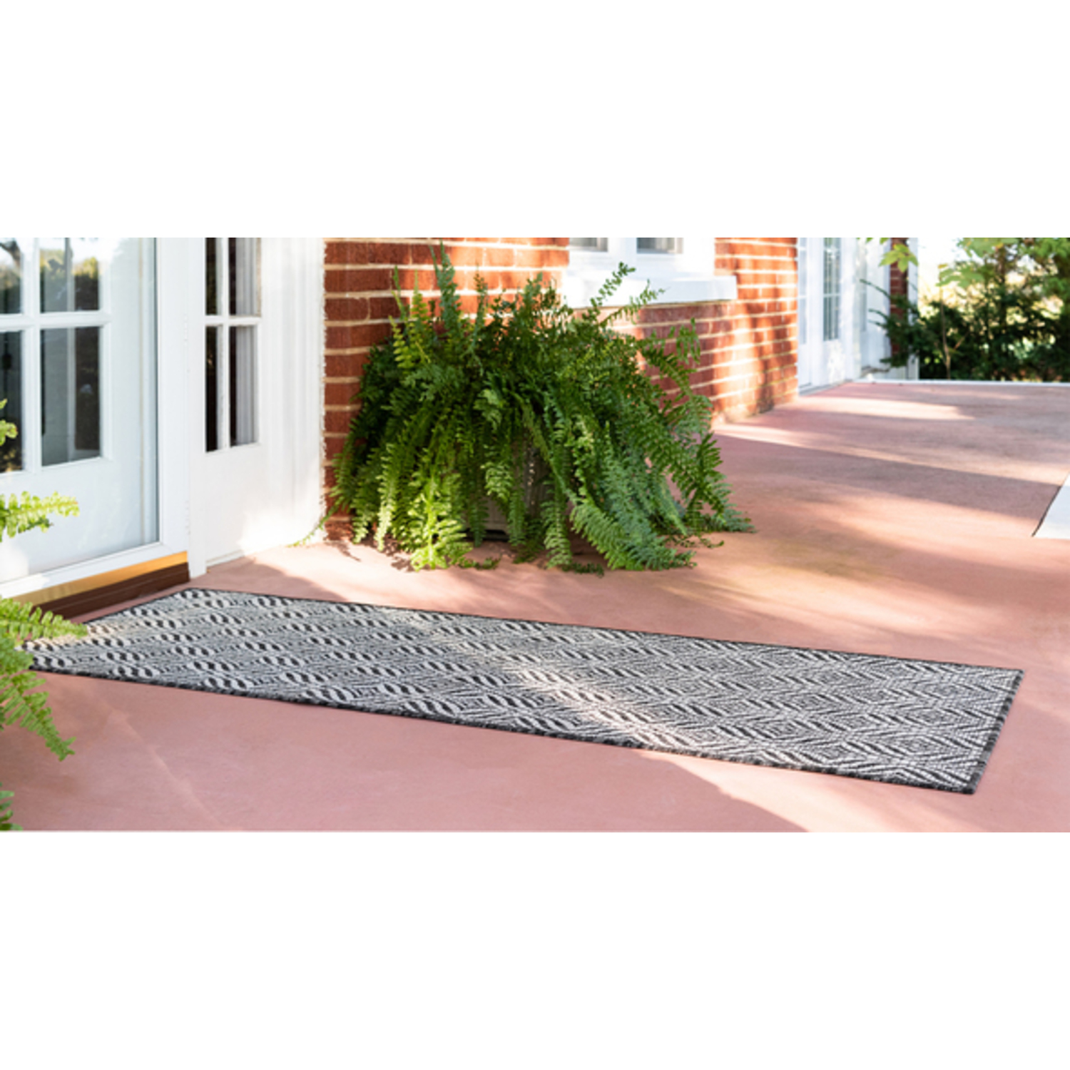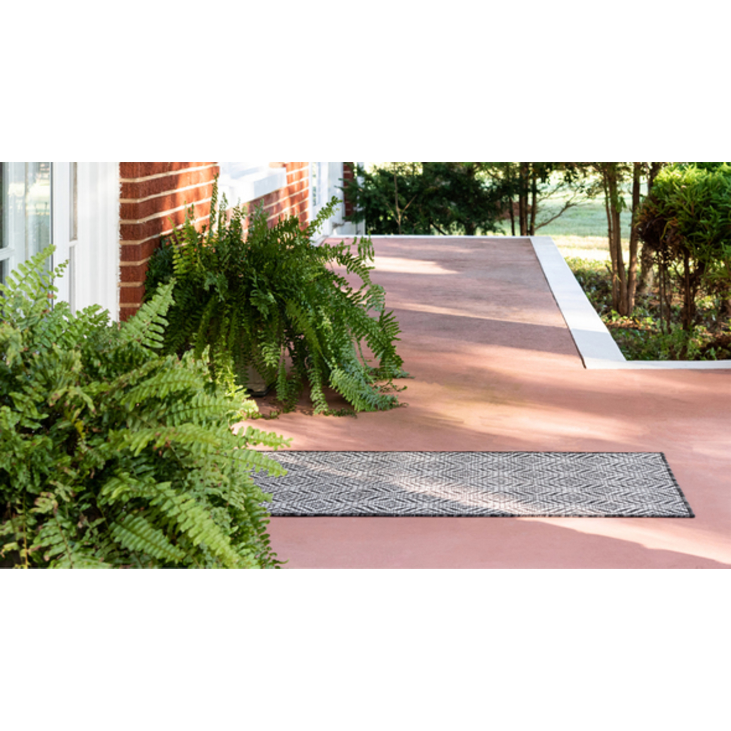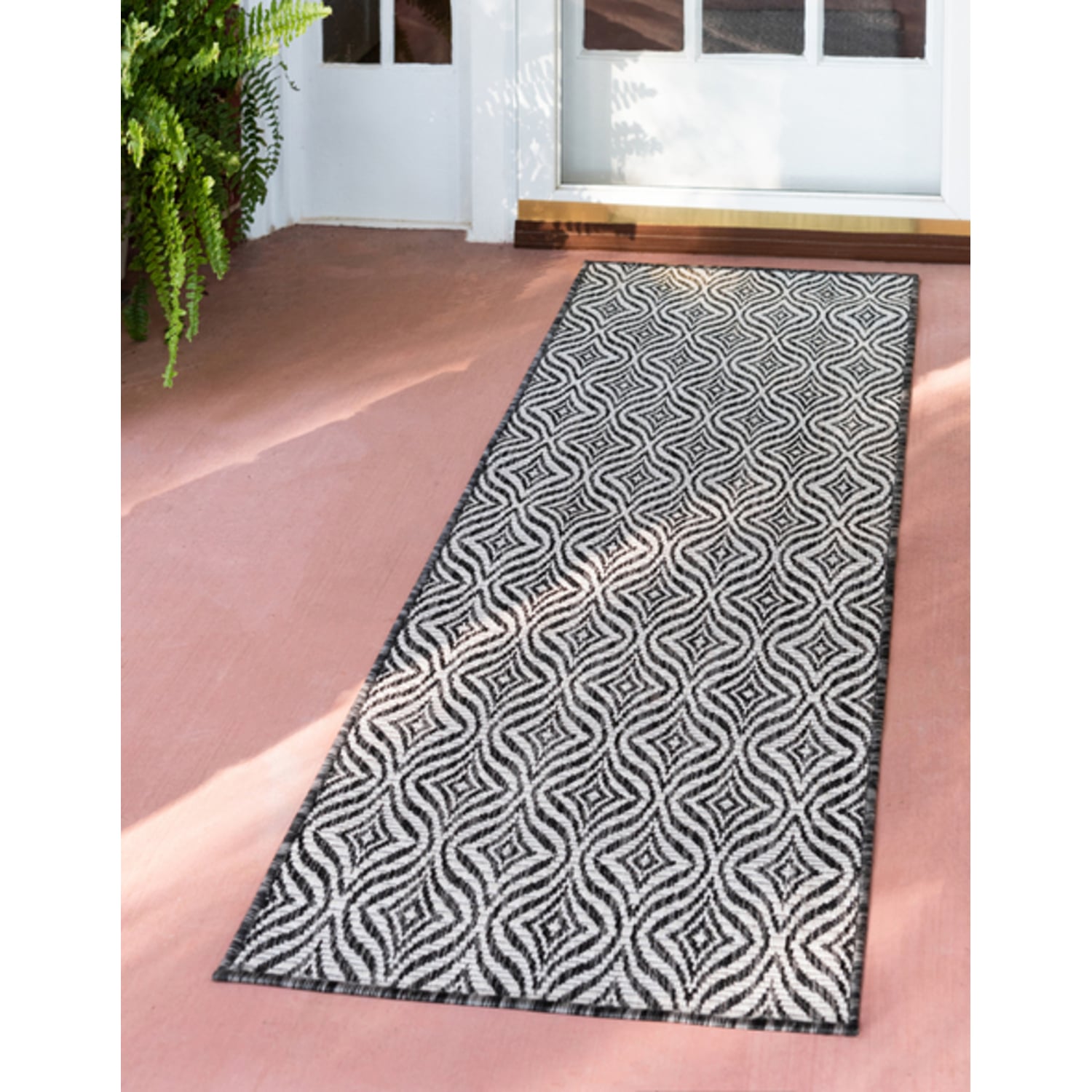 Unique Loom Outdoor Deco Trellis Rug in Charcoal/Ivory Runner 3148901