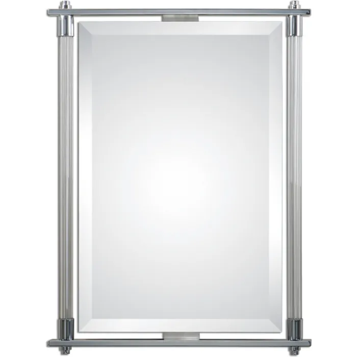 Ribbed Glass Columns Accented With Polished Chrome Plated Details. Mirror Features A Generous 1 1/4" Bevel. May Be Hung Either Horizontal Or Vertical.